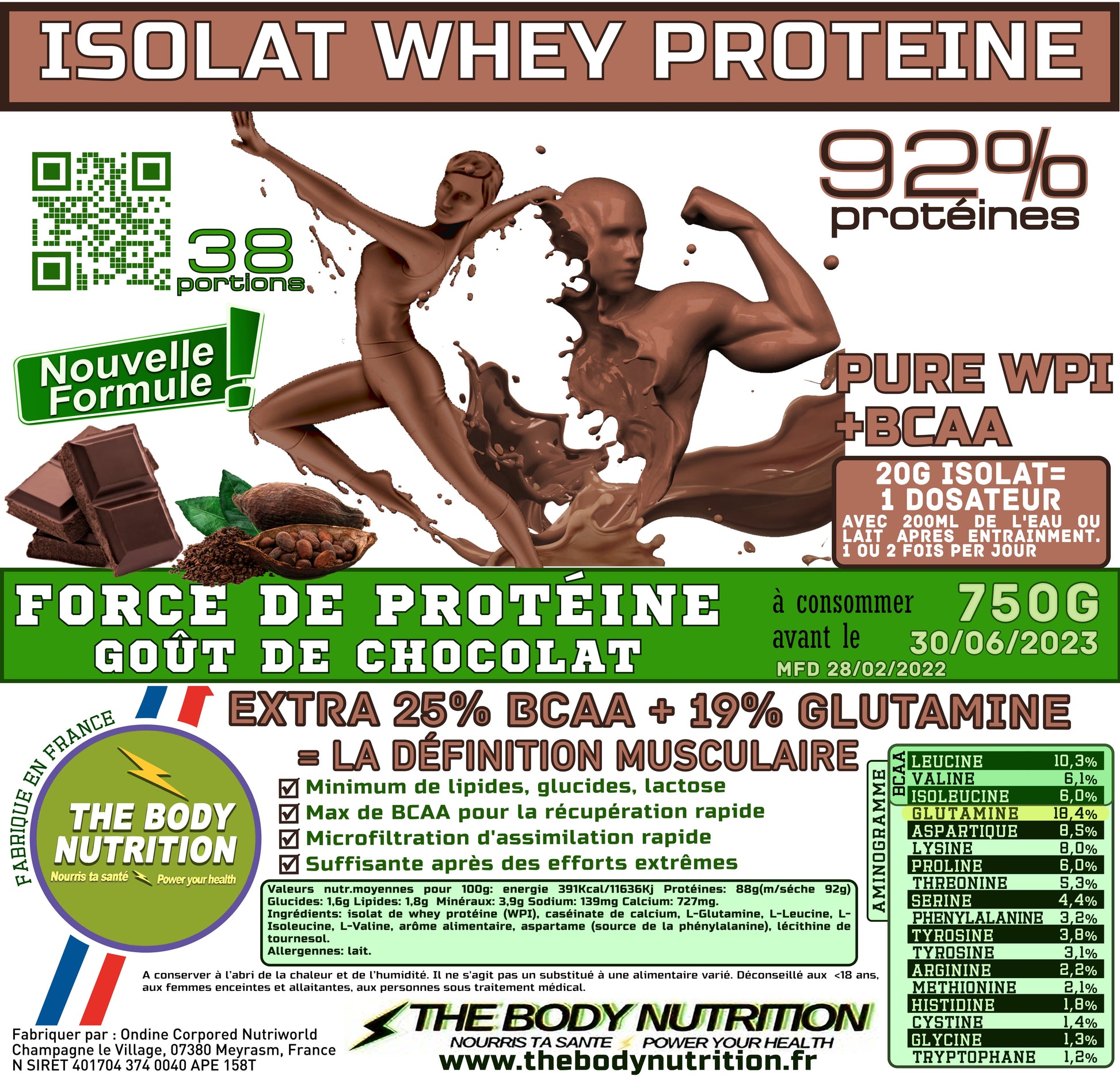 100% ISOWHEY = 93% PROTEINES = 27% de BCAA + 21% de GLUTAMINE